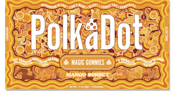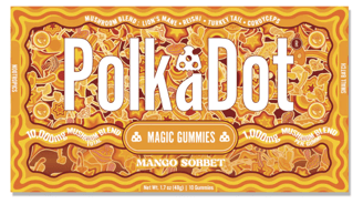 What sets Mango Sorbet Gummies apart is their unique blend of organic mushrooms, known as the Proprietary Functional Organic Polka Blend: